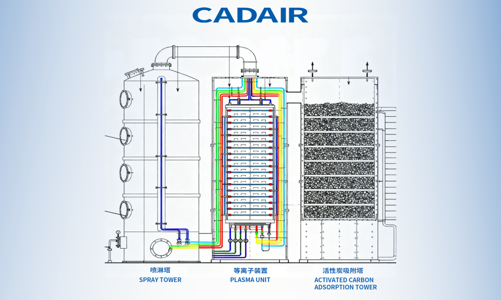 CADAIR designed a combined process of “Spray + Injection Plasma + Activated Carbon Adsorption” based on flue gas characteristics, achieving efficient purification through layer-by-layer filtration.